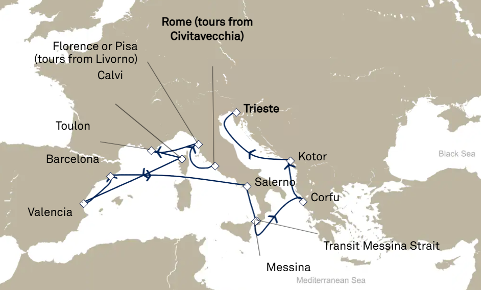 13 puertos de Civitavecchia (Roma) a Trieste